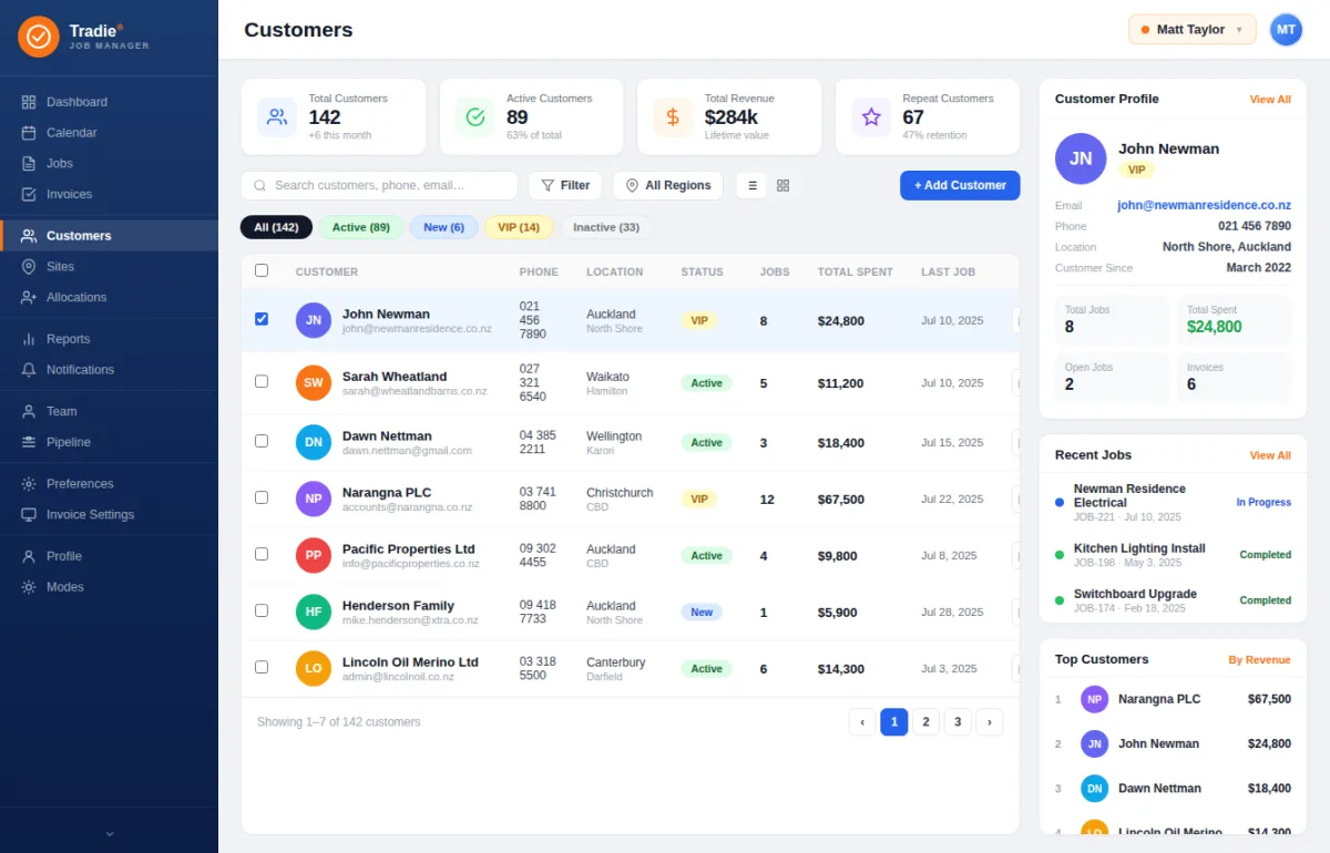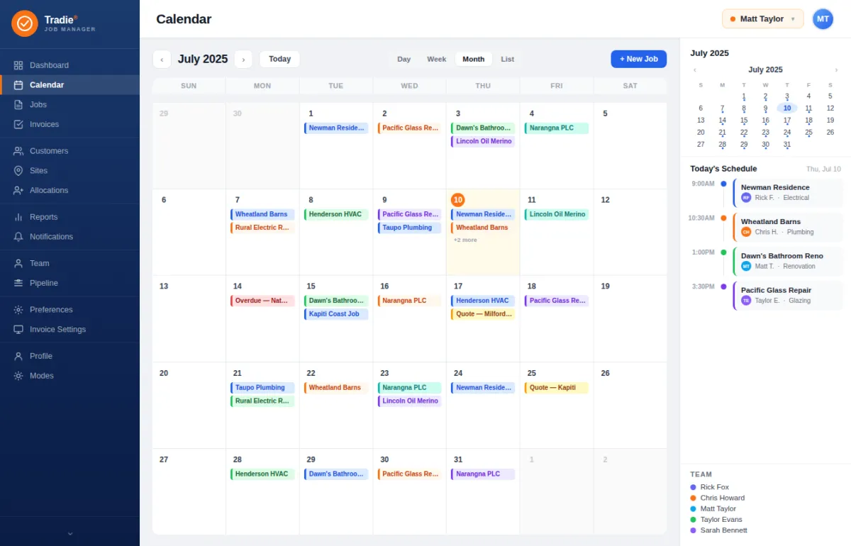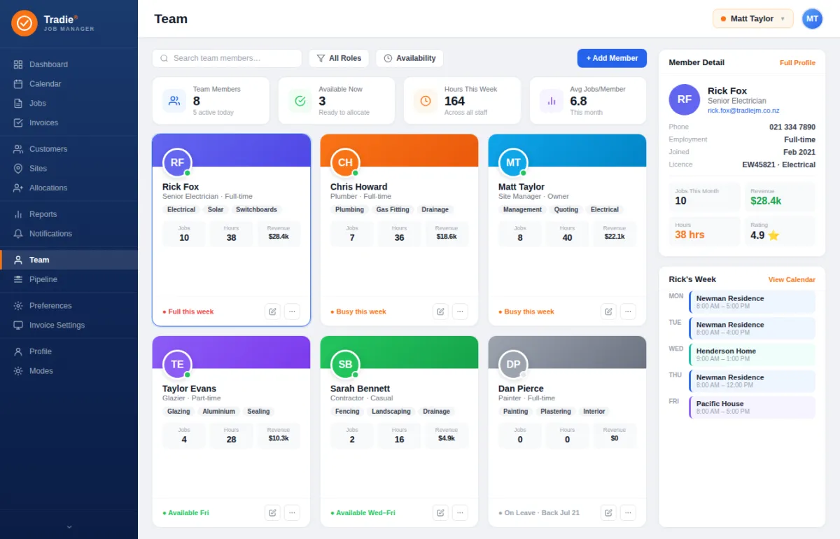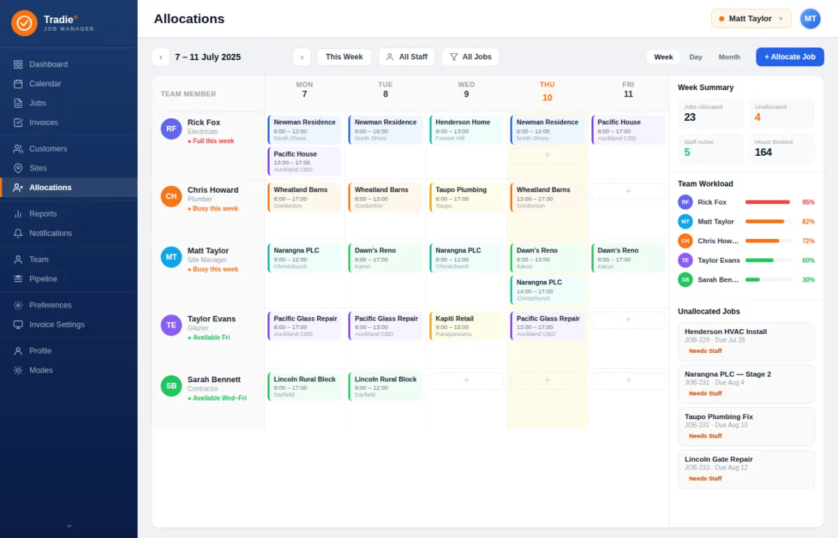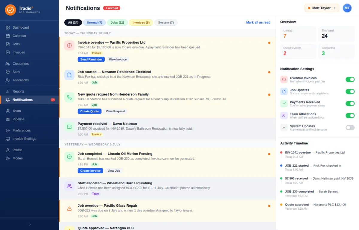 By reducing manual paperwork and duplicated data entry, the system lowers administrative overhead and staffing costs. Built-in job tracking minimises missed quotes, forgotten invoices, and costly scheduling errors. Better visibility of labour, materials, and job progress helps tradies protect profit margins and avoid budget blowouts.